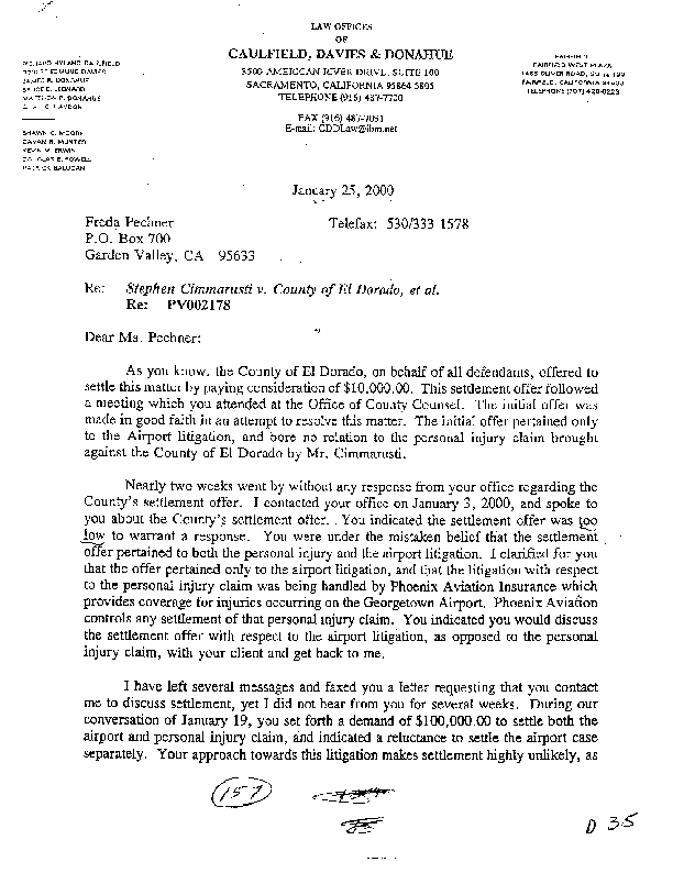 Letter to Pechner from Caulfield, Davies, & Donahue.