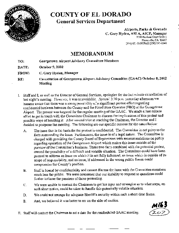 4. Copy of memo to GAAC from Gary Hyden showing why 10/8 GAAC mtg was