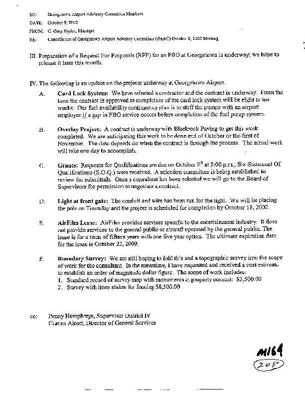 Georgetown Airport and the GAAC. Other items were mentioned, but as of now
