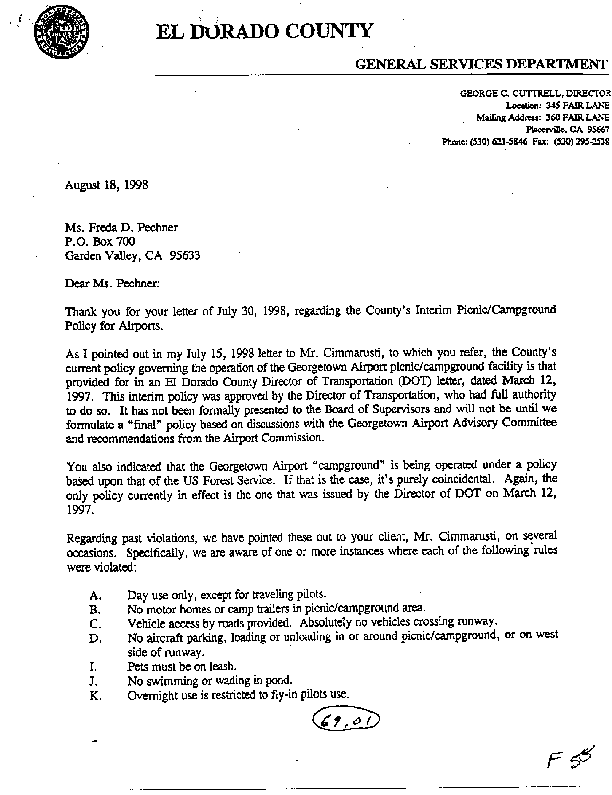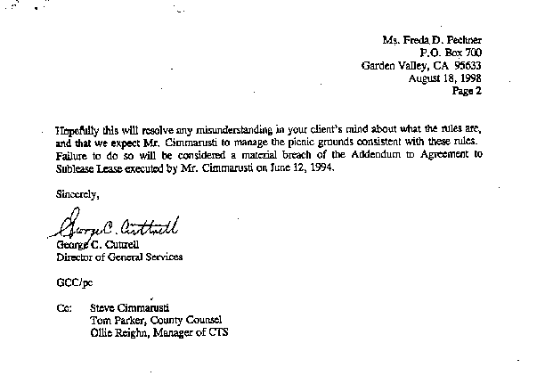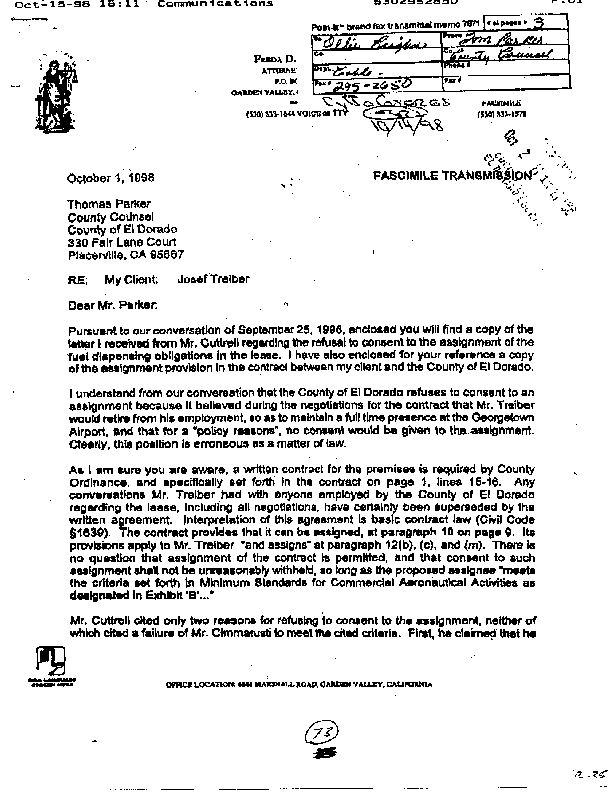 Letter from Pechner (Deputy County Counsel) to Parker stating that three