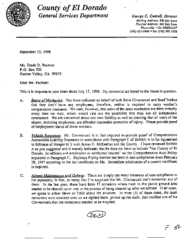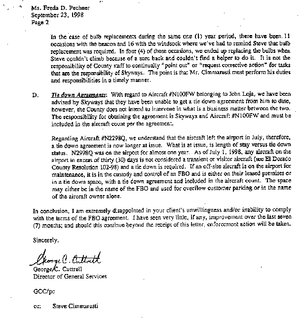 for fuel flowage were no longer accepted by County and the check of 9/15/98