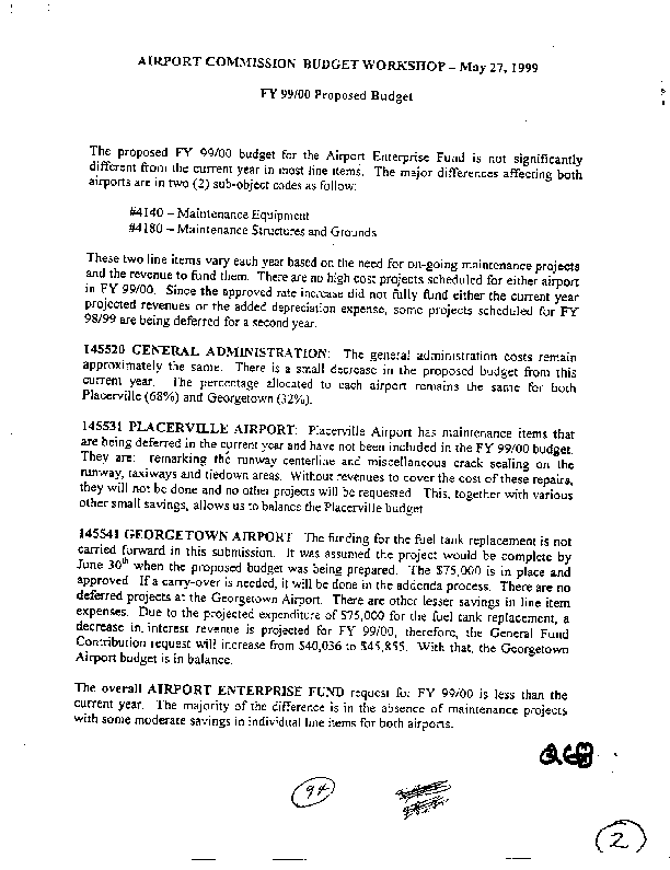 for either airport. Admin costs are 68% for Placerville and 32% for