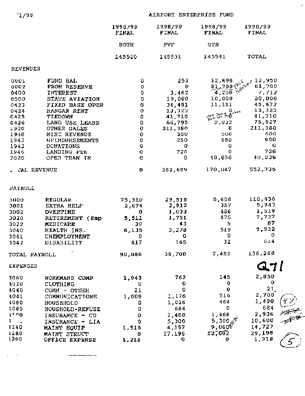 This has the proposed budget for the airports. No high-cost items scheduled