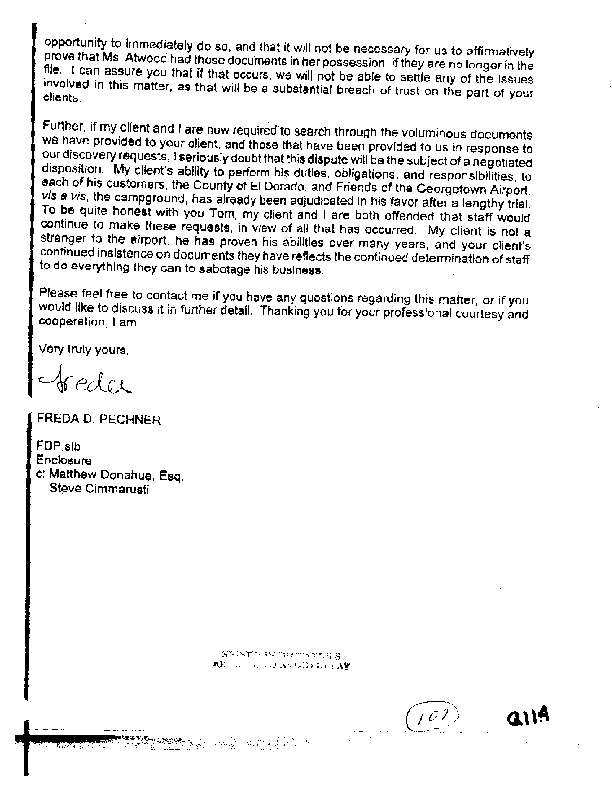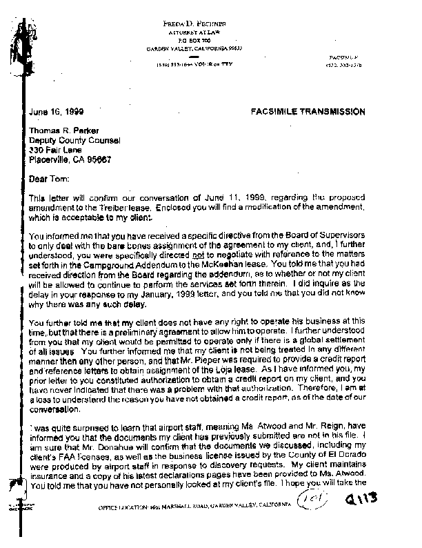 2. He was told by BOS NOT to negotiate with matters in campground addendum.