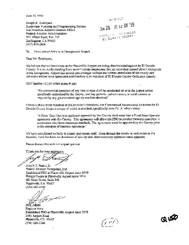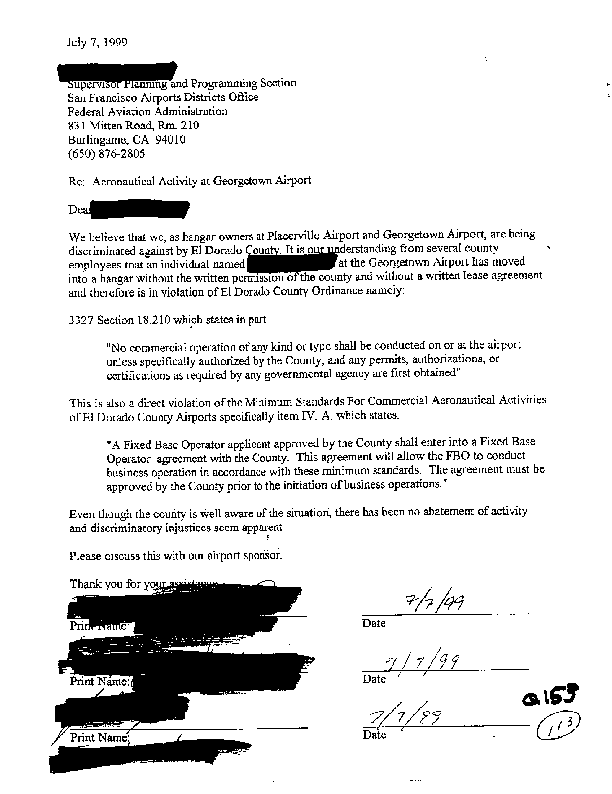 But was this from any hangar owners at the Georgetown Airport? There were four names and the wording was exactly the same as the 6/25/99 letter above.