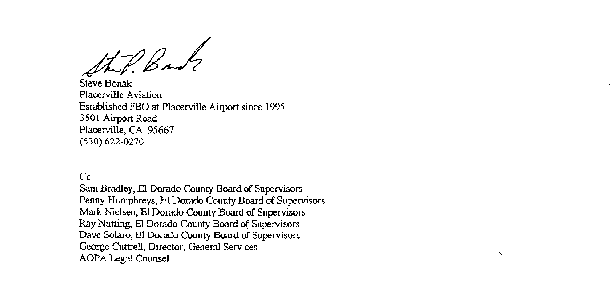 Statement signed by hangar owners at Placerville and Georgetown Airports.
